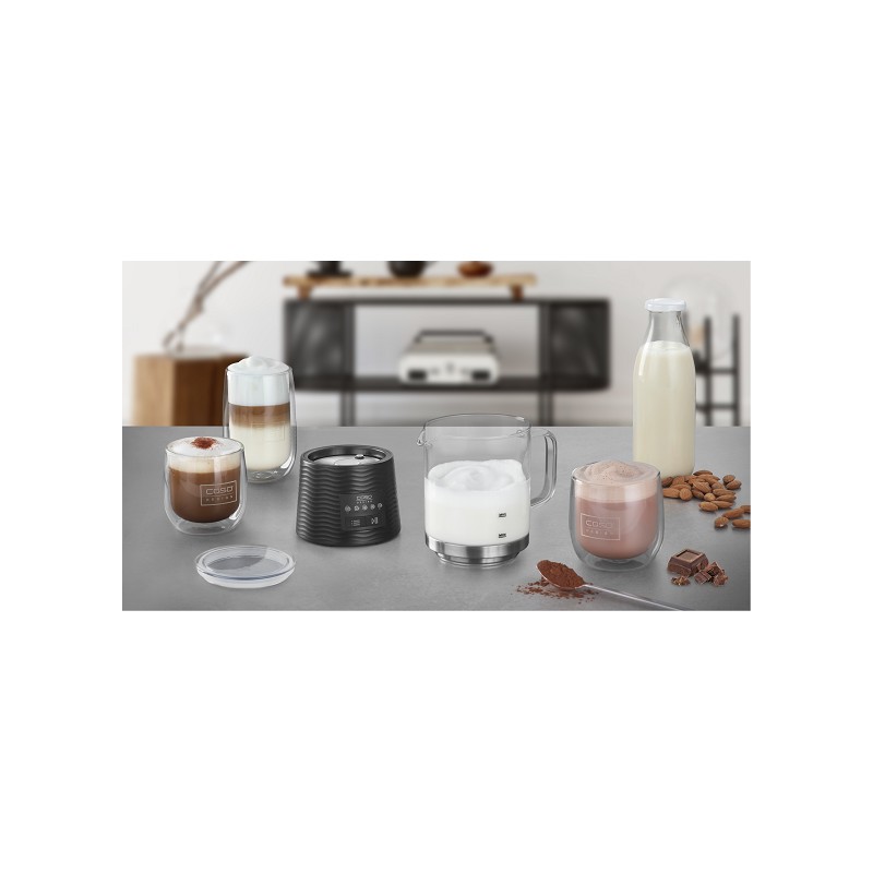 Erlebe den perfekten Milchschaum mit dem CASO CappuLatte. Dieser elegante Milchaufschäumer zaubert im Handumdrehen cremigen, fluffigen Milchschaum für deine Lieblingsgetränke wie Cappuccino, Latte Macchiato oder heiße Schokolade.