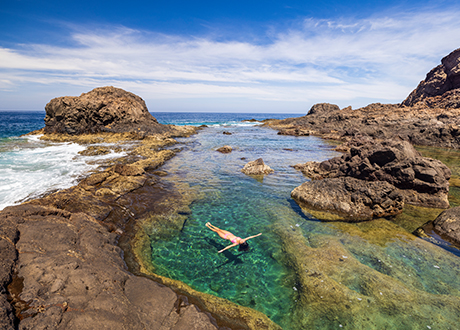 Besonders eindrucksvoll: der Naturpool El Agujero bei Gáldar, der Charco de San Lorenzo in Moya oder die geschützten Becken von Agaete mit Blick auf den Atlantik. Umgeben von Lavagestein und Wellen bieten sie ein einzigartiges Badeerlebnis inmitten der Natur.